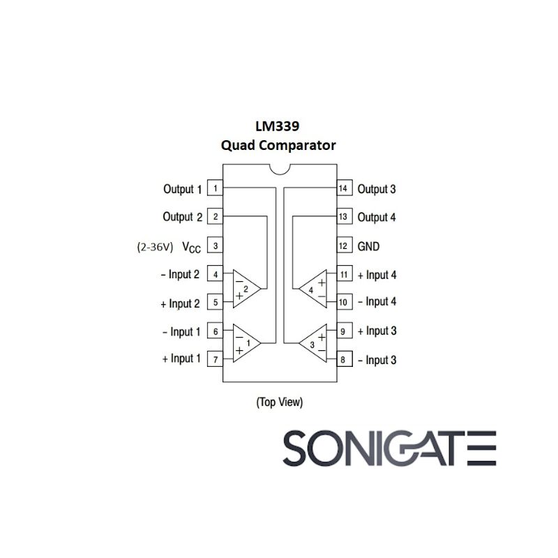 Encapsulamentos comuns: **DIP-14 / SOIC-14